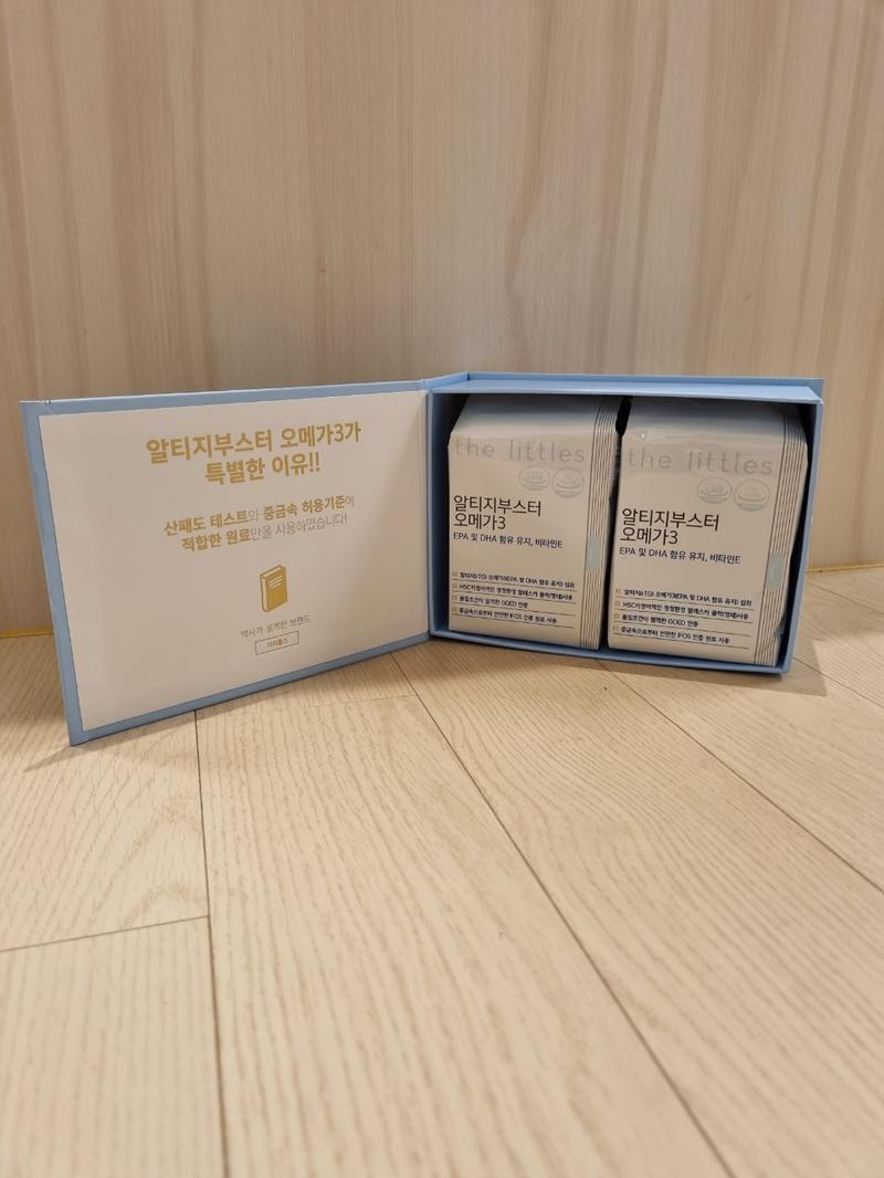이 5가지를 충족하는 오메가3를 구입해야겠다고 생각하고 많은 제품을 알아봤습니다. 블로그, 유튜브 등을 보면서 비교한 결과 "더리틀스 알티지부스터 오메가3" 가 제일 적합하다는 생각이 들어 구입했습니다.
