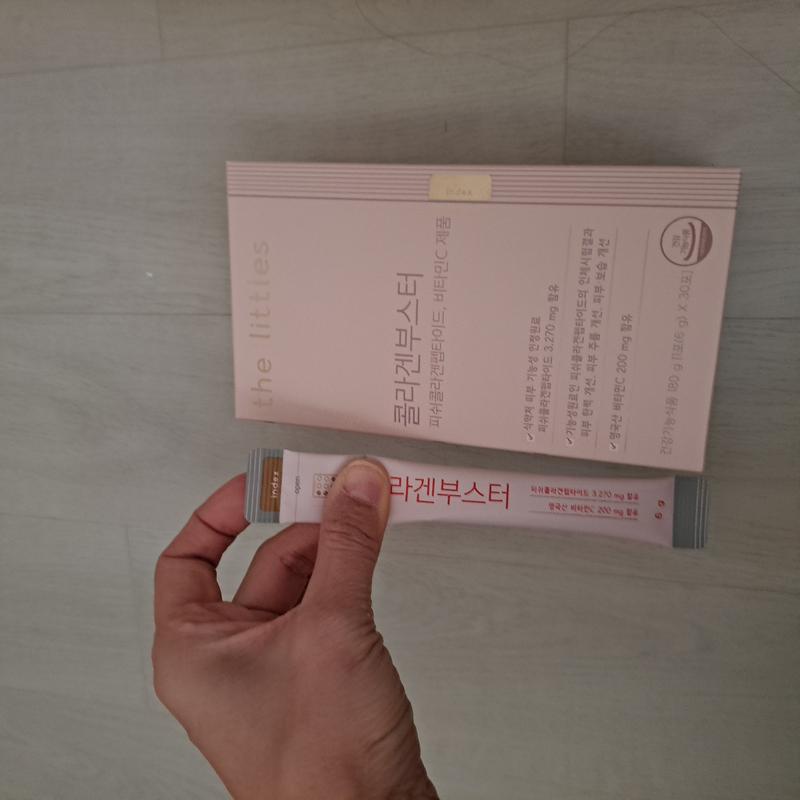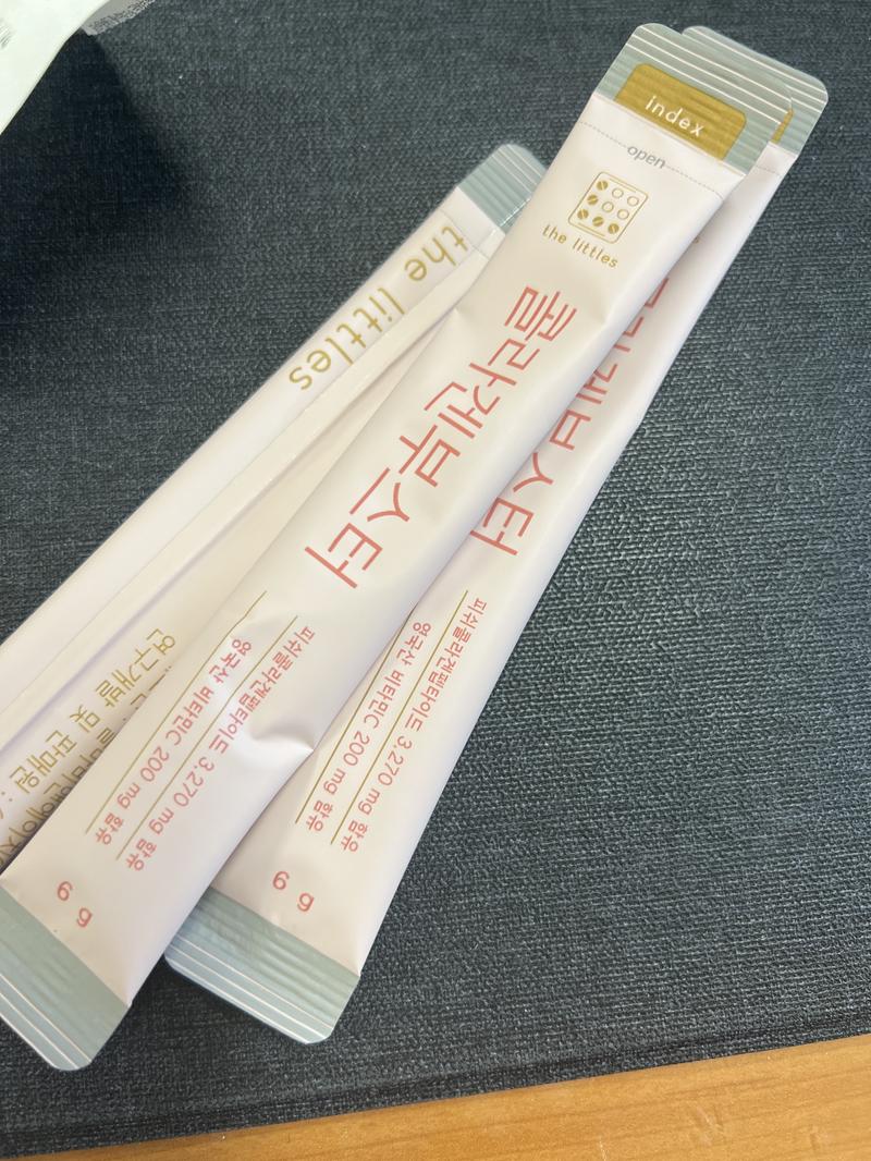 내몸에 콜라겐이 필요함을 피부로 느끼는 나이 꾸준히 섭취해보려고 폭풍검색하다가 더리틀스를 주문하게되었어요 가격대가 센편이라 망설이긴했어요~~사진에서보는 것처럼 한포에 들어있는 양이 꽤많아 놀랐어요.. 동봉 후 입에 털어넣는순간 많은 양에 또 한번 놀랐답니다^^;한번에 털어 넣어 먹긴 부담스러운 양이에요ㅋ 맛도 새콤달콤해서 또 먹고싶어지더라고요♡