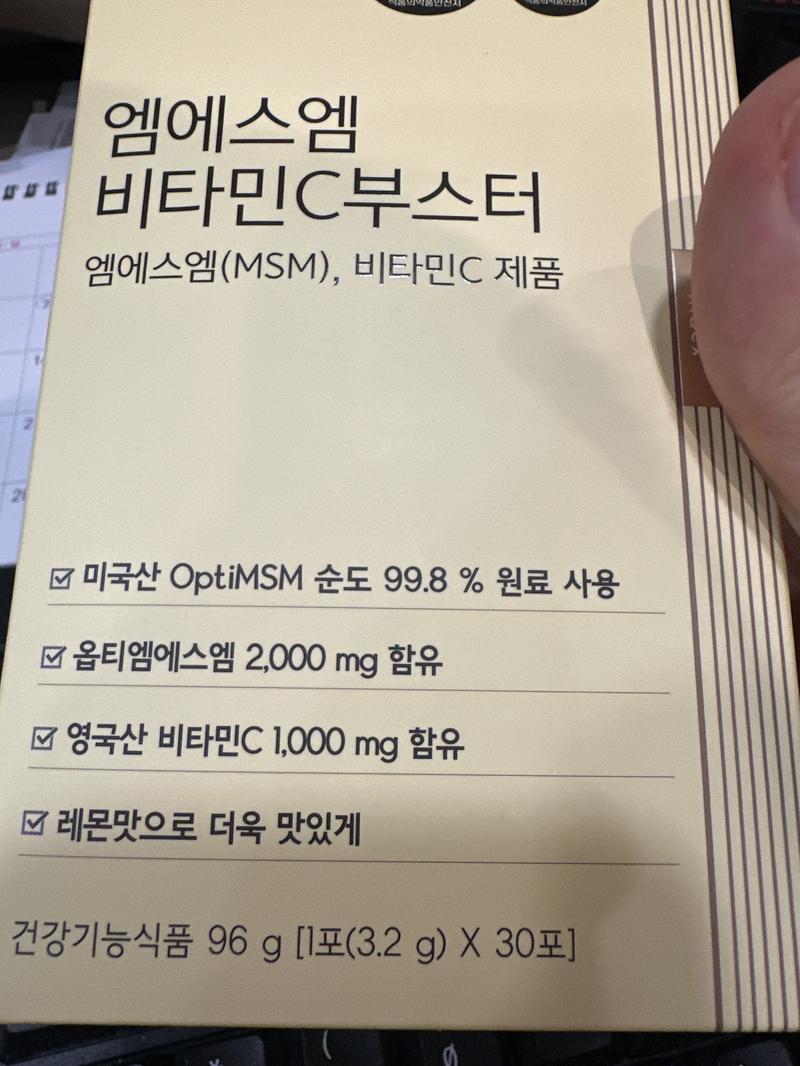한달 구매후 *용해봤는데 아직은 *용한지 얼마되지 않아어떤지 잘 모르겠습니다. 그래서 2달치 더 주문했습니다. MSM 1일 섭취 최대함량, 비타민C 까지간편 섭취라 너무 좋아요. 따로 비타민C 챙기지 않아도 되서 좋네요.