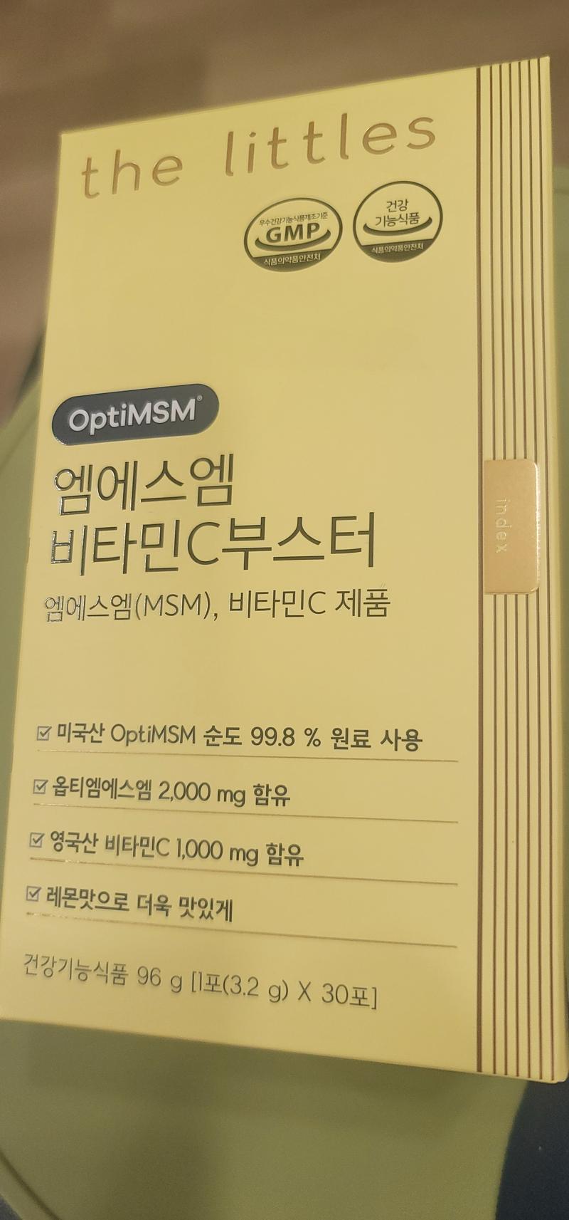 한달 구매후 *용해봤는데 아직은 *용한지 얼마되지 않아어떤지 잘 모르겠습니다. 그래서 2달치 더 주문했습니다. MSM 1일 섭취 최대함량, 비타민C 까지간편 섭취라 너무 좋아요. 따로 비타민C 챙기지 않아도 되서 좋네요.